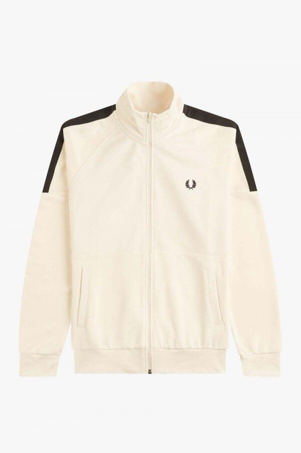 A track jacket in a matt finish tricot fabric featuring a funnel neck, contrast panelling and signature Fred Perry detailing.