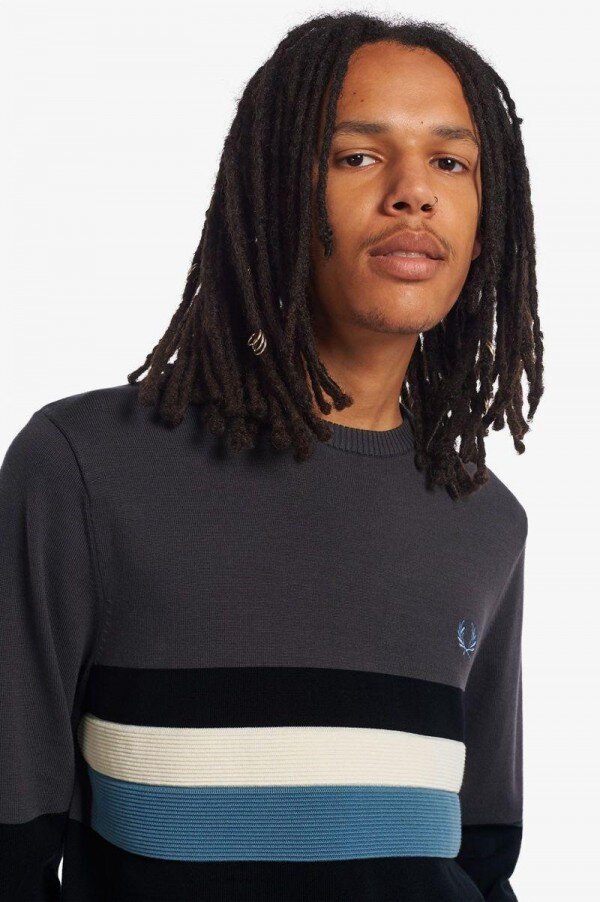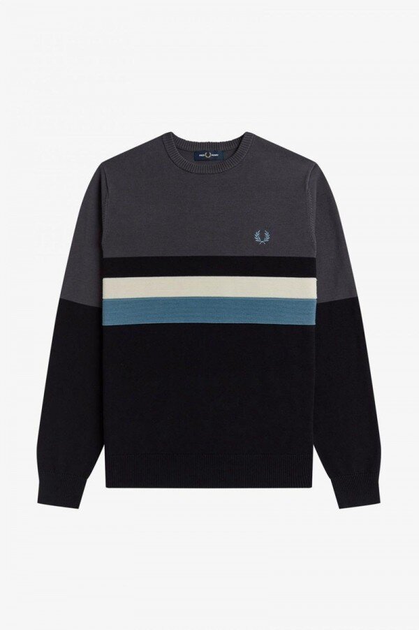 Our classic crew neck jumper in a blend of merino wool and cotton. Designed in a distinct colour block design with signature Fred Perry detailing.