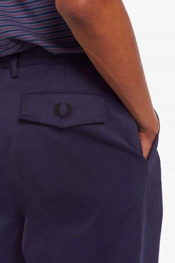 Inspired by designs from our archive, our Reissues collection reinterprets original pieces with directional styling. Harking back to the sunny courts of Los Angeles in the 1930s, when Fred owned the Beverly Hills Tennis Club, our most distinctive tennis styles are reissued with refined fabrics and finishes. The ultimate celebrity hang-out spot, the club became – not only the perfect spot for a tennis game – but a place to see and be seen. Constructed from smart woven cotton, with formal finishes, our trousers have a relaxed slouchy fit inspired by the luxe leisurewear of the time. The coin pocket is an original detail, taken from the tennis shorts of the time. Use it to store your locker money.