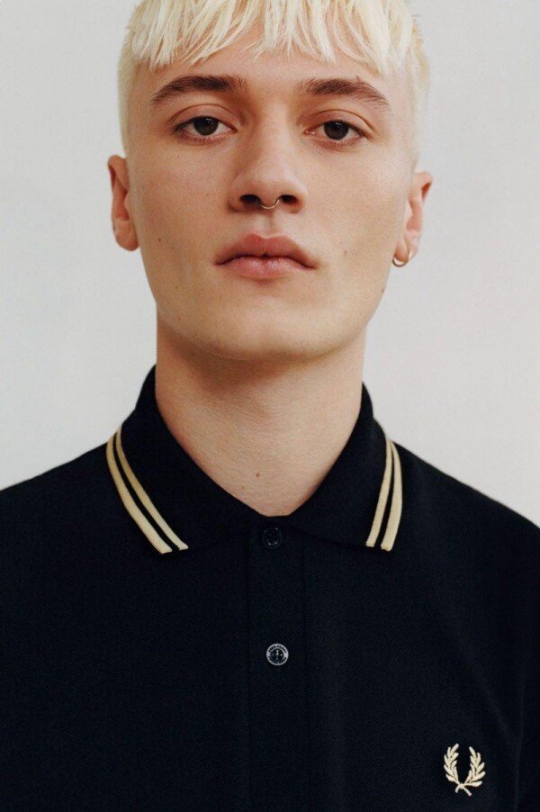 A true original, the M12 hasn’t changed much since it was originally designed by Fred Perry in the ‘50s. Legend has it that a buyer from Lillywhites requested the addition of football team colours to the plain-colour Fred Perry Shirt. So, Fred added subtle club colours to the collar and cuff and our M12 was born. The piece that took us from sportswear to streetwear and the first to carry our signature twin tipping in the 5-4-4 ratio that’s unique to us. Designed in Fred’s famous streamlined fit – slightly boxier than our M3600 – its production is a real labour of love, with each polo knitted, dyed, cut, embroidered and hand-finished in Leicester, England. The black tennis shirt with champagne tipping was our very first colourway. Designed in the late 1950s as a subversive take on the original white tennis shirt. The colours of anti-establishment.
