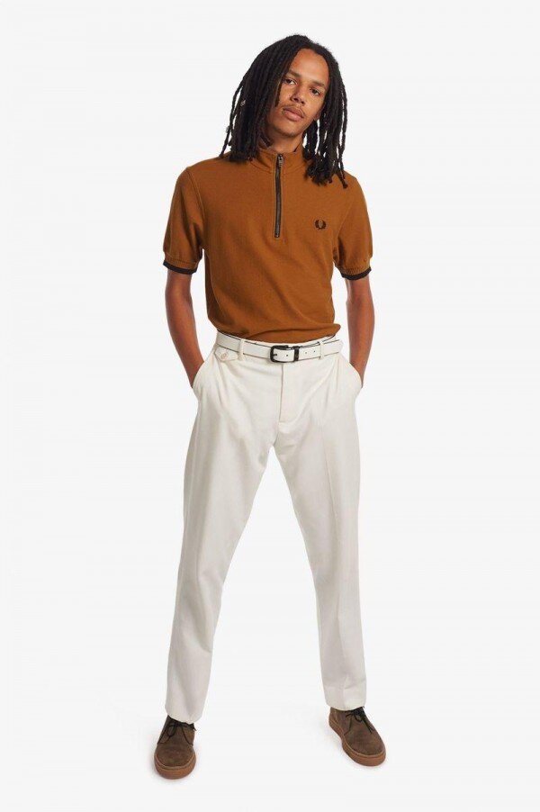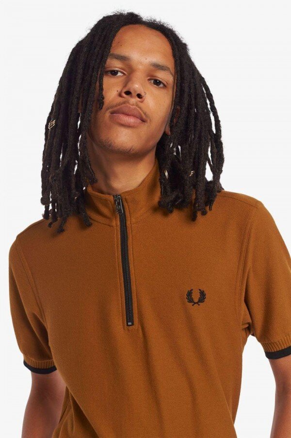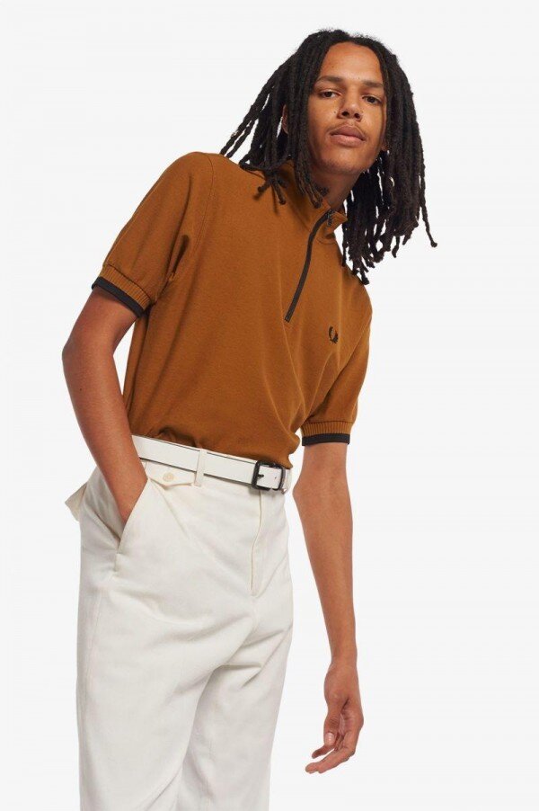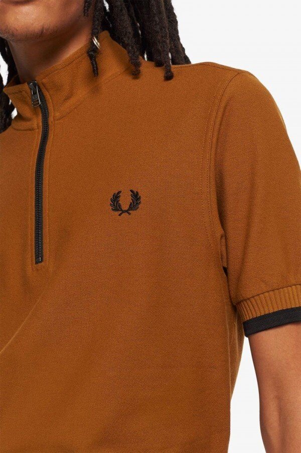Cycling has long influenced the modernist uniform with the mods of the ‘60s and ‘70s taking inspiration from the continental knitted cycling jerseys of the day. Our Funnel Neck Polo shirt takes the classic zip opening of the cycling jersey and adds it to a cotton polo shirt. Fred Perry through and through.