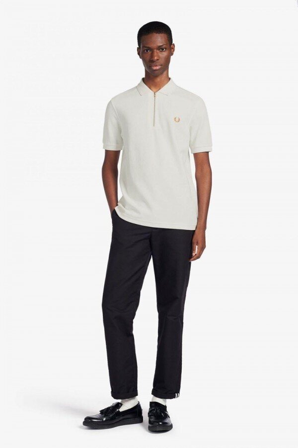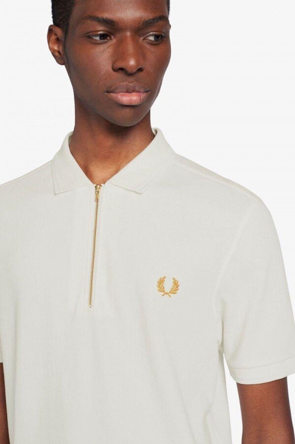 Our cotton piqué polo shirt, adapted with a towelling panel on the top body and sleeves and a cycling inspired half zip opening.