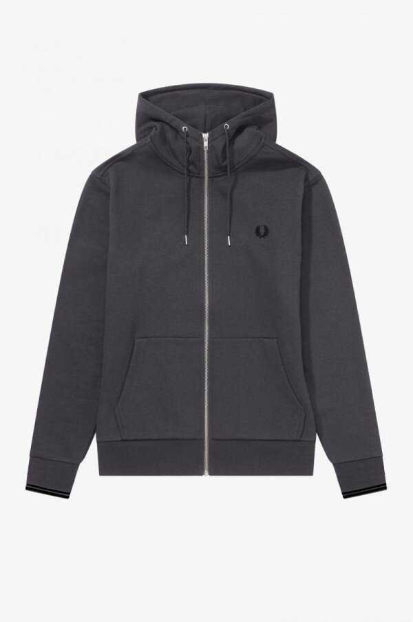 Cotton/poly loopback / Regular fit / Lined hood with draw-cords / Silver-tone zip, eyelets and draw-cord ends / Tipped cuffs