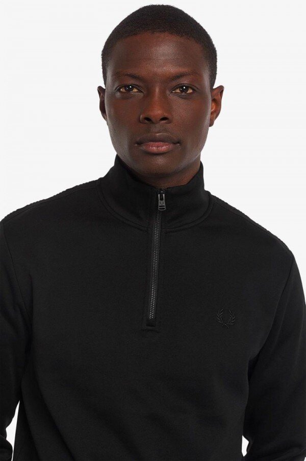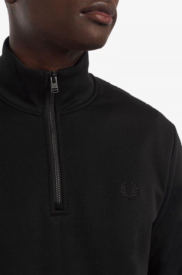 Our Half Zip sweatshirt, crafted from a soft French terry cotton fabric and featuring tonal Laurel Wreath taping on the sleeves.