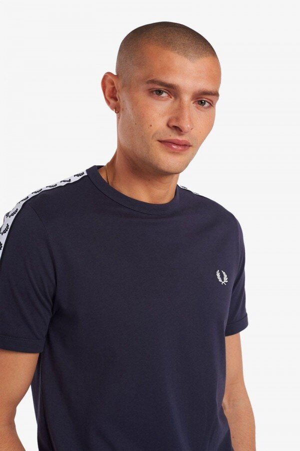 We haven’t changed much since our ringer t-shirt was originally designed 50 years ago. The white track tape references the cash-strapped time of the ‘70s when branding was generic to all colours – a feature we’ve very much grown to like. Fred Perry through and through.
