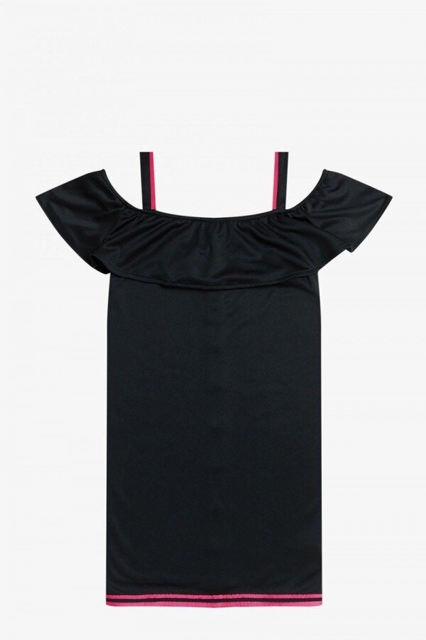 Silky polyester / Regular fit / Bardot sleeves with internal elastic along top edge / Contrast colour tape shoulder strap detail / Tipping tape detail at hem