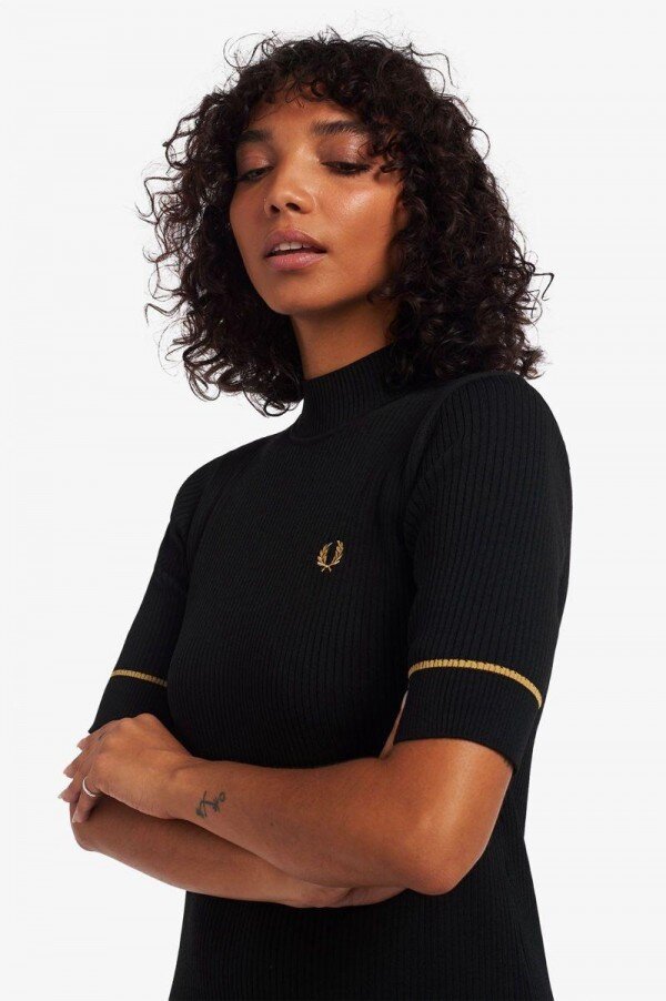 A ribbed knitted dress in a soft and lightweight fabric and featuring subtle Fred Perry detailing.