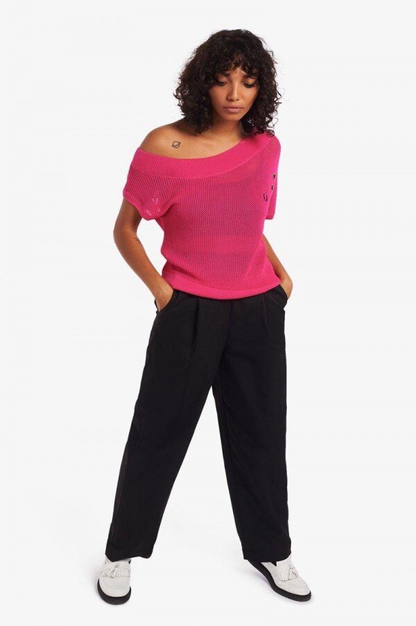 Referencing Amy’s original designs for us, our One Shoulder Knitted Top references classic Americana and features signature Amy detailing.